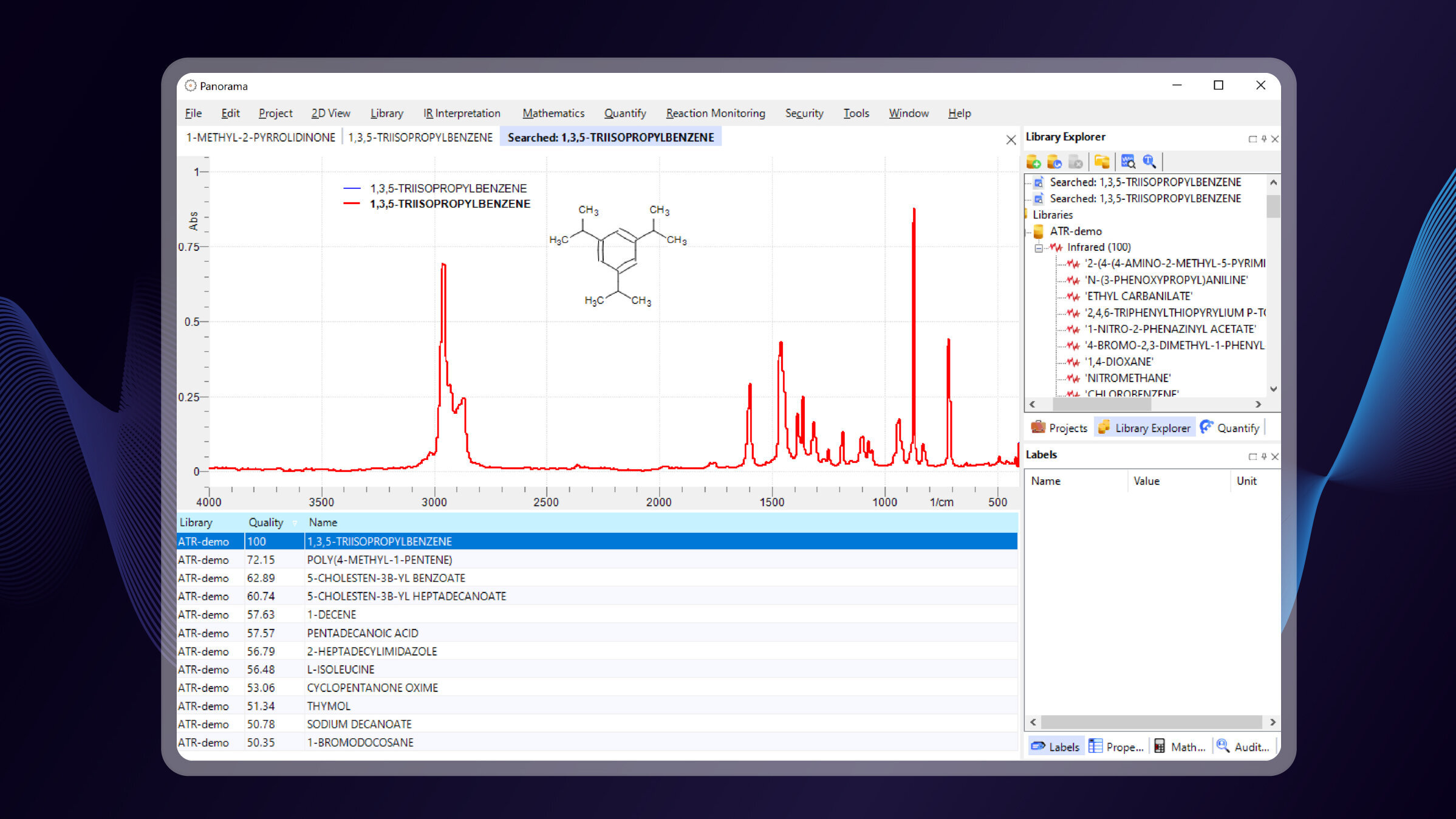 The Search add-on module includes a powerful library module which allows archiving and searching of spectroscopic data on libraries or even directly on your hard disc.